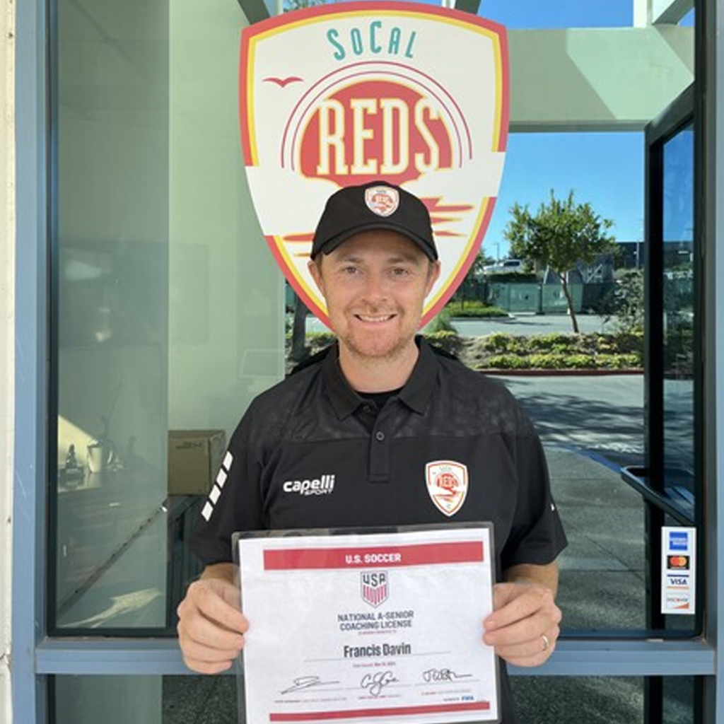 SoCal Reds is proud to announce the most recent achievement of Coach Francis Davin, who was awarded his A Coaching License.