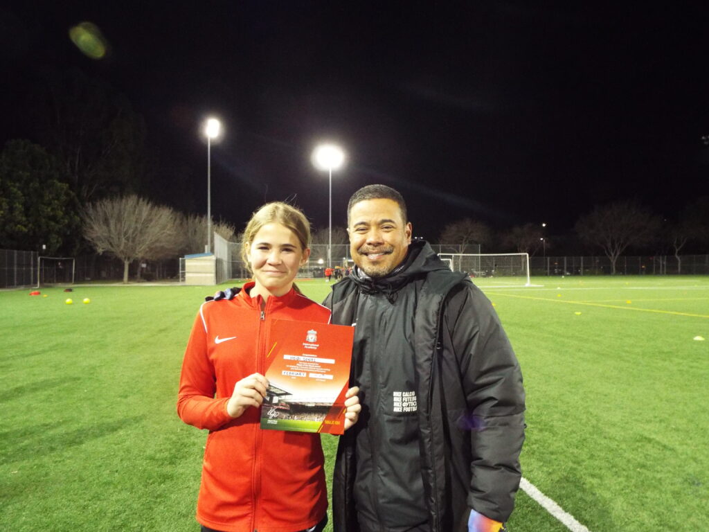 “Evan is always fully committed to finishing the academy homework and has a 100% completion record for his skills work. He recently managed to improve his juggling score 5 weeks in a row. He got injured in an EAL game but attended every practice while on crutches to ensure he could learn what we were working on and help with equipment during the session.” – Francis Davin“Carter signed with the team recently but has gone on to become a really important member of the squad. He came to the team with lots of talent and little experience and has been enthusiastic and dedicated to everything. His hard work paid off in the TOC as he notched 6 goals in 2 games and helped secure his team 4 points against tough opponents.” – Max Dolton“Kyla has always been a team player from the start. She is always encouraging her teammates even if mistakes are made. The entire team loves her and her infectious personality.” – Ron Paredes