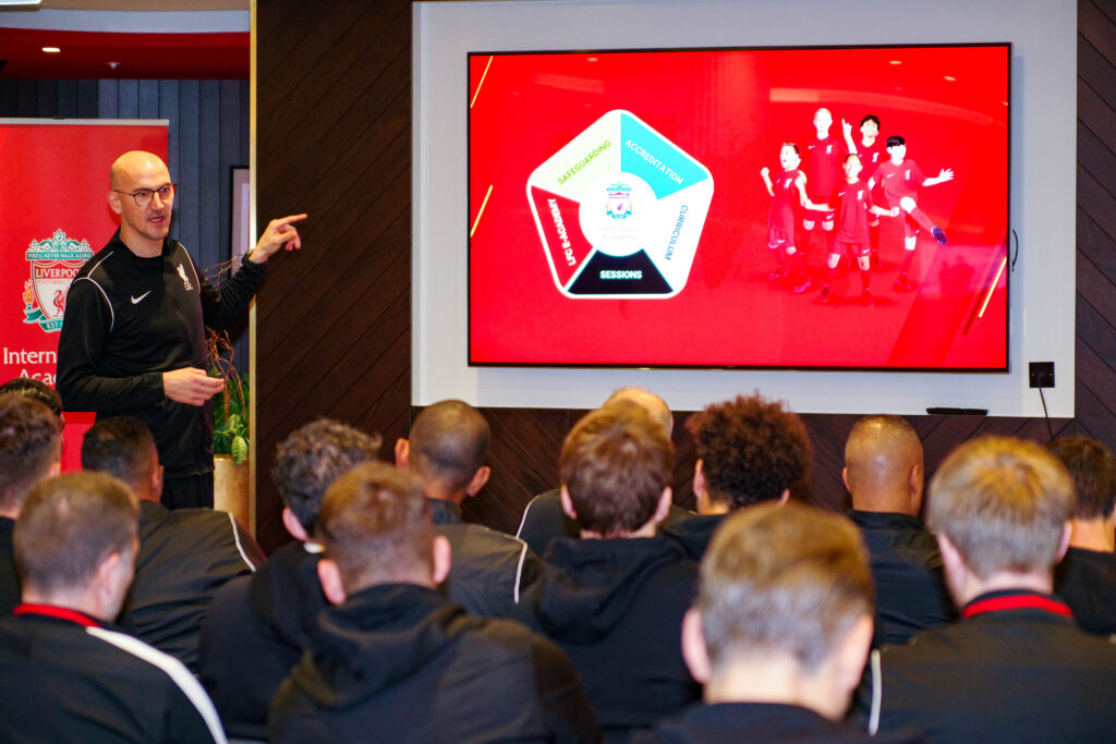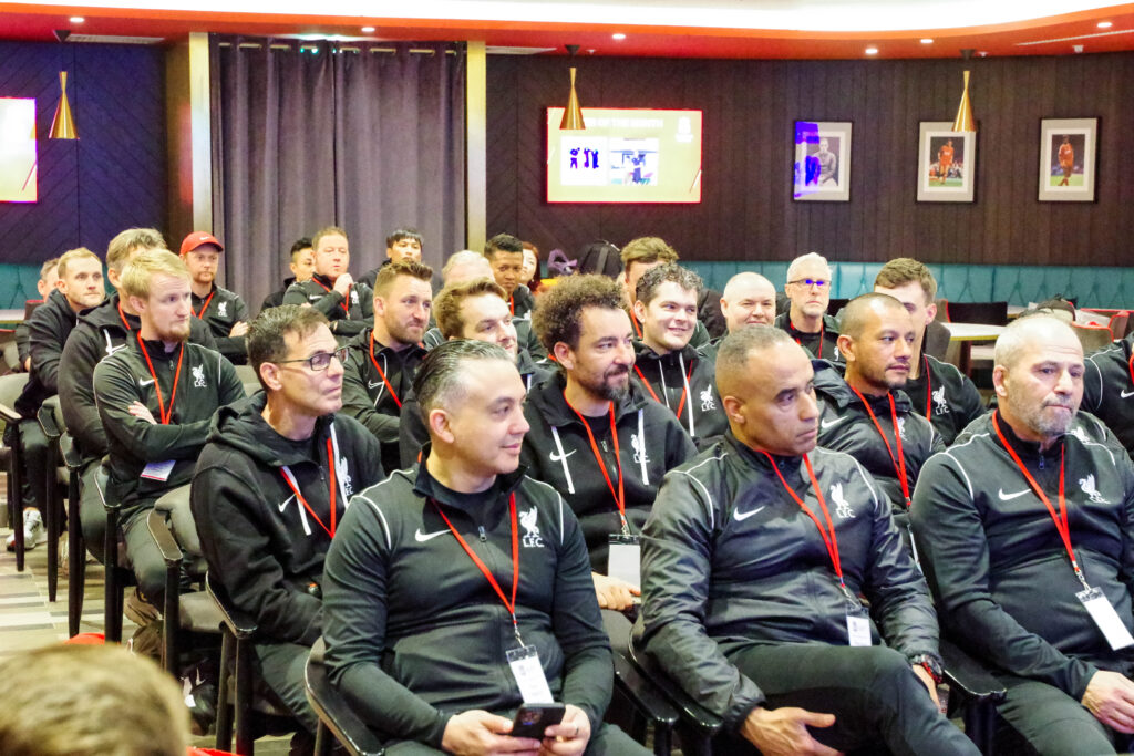On Day 2, the coaches traveled to The Academy, participated in an on-pitch session delivery, attended more guest speaker presentations—delivered by John Barnes and LFC Academy Coaches—and observed an LFC Academy training.