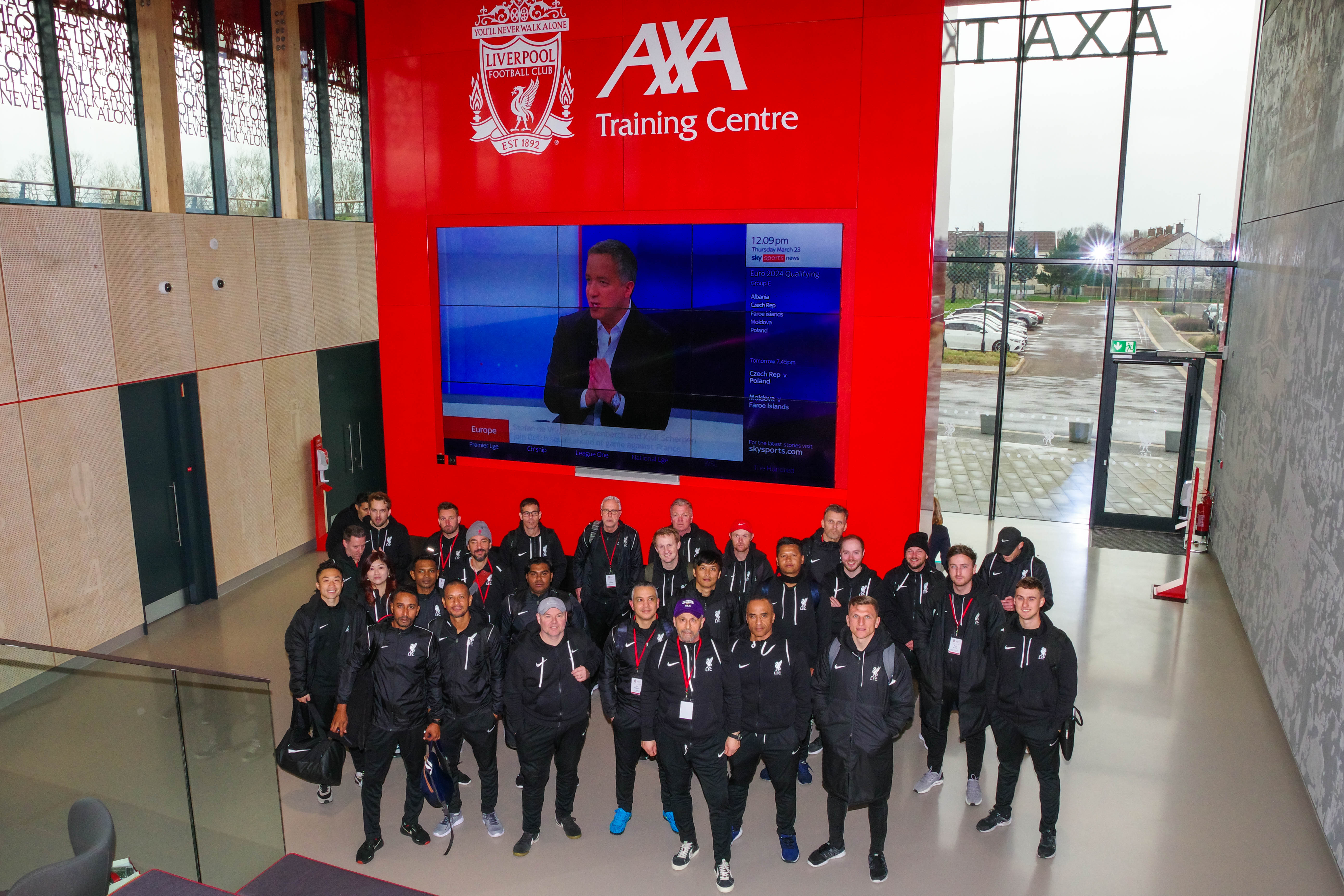 From March 22nd to the 26th, our coaches Dave, Francis, James, and Tim visited Liverpool headquarters for the annual International Academy Coaches Convention with more than 30 senior coaches worldwide. On this trip, they learned from many guest speakers and saw the Liverpool grounds. They toured the Anfield Stadium, The Academy, and the AXA Training Center. As well as visited Goodison Park to watch Everton Women vs. LFC Women and attended the LFC Legends vs. Celtic Legends game at Anfield Stadium.
