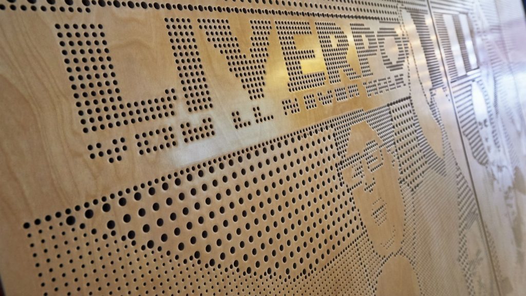Located in the atrium of the visitor and U23s’ section of the facility stands the Fan Wall – 100sqm of high-quality photographs of supporters and their flags and banners from matches at Anfield.